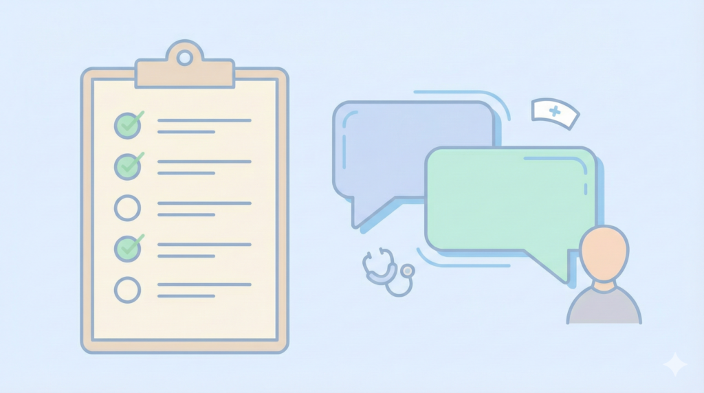 私はただ「大丈夫ですか?」と聞くと、先生も答えにくいのか言葉を濁されてしまい、余計に不安になることが多かったんです。だから、条件・目的・次の一手を具体的に聞くようにしていました。