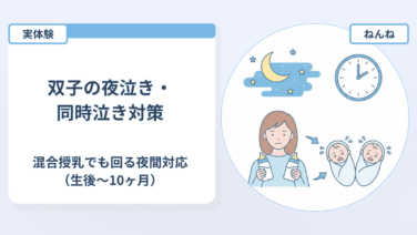 ねんね 双子の夜泣き・同時泣き対策|混合授乳でも回る夜間対応(生後〜10ヶ月)
