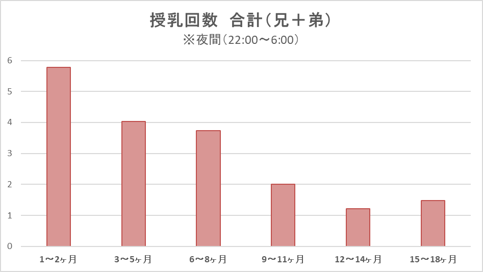 - 夜間授乳(22:00〜6:00)が「いつ頃から」「どれくらい」減っていったか(1年半の集計)